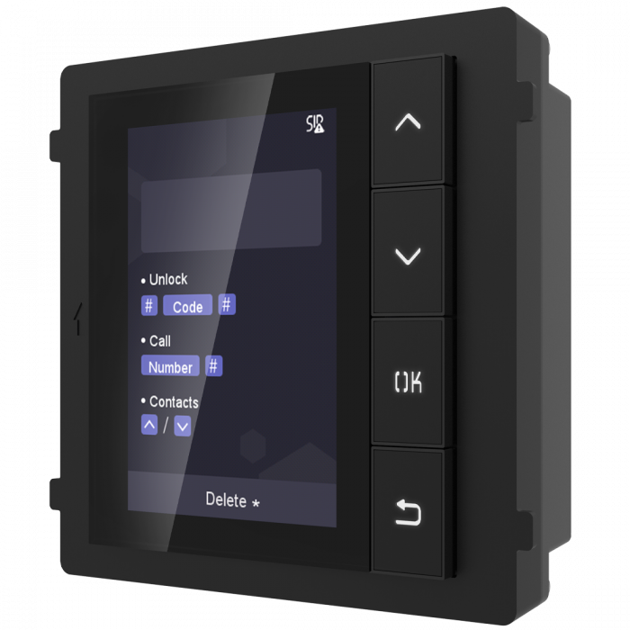 Moduł wyświetlacza, LCD 3,5", rozdzielczość 320*480, 4 przyciski z podświetleniem, wyświetlacz zegarowy, odblokowanie kodem PIN, wyświetlanie listy kontaktów, połączenie modułu przez port RS-485, stopien ochrony IP65, montaż podtynkowy, montaż natynkowy, wymiary 98,21x100,21x33,7 mm, zasilanie przez inny moduł (wejście zasilania: 12VDC, wyjście zasilania: 12VDC)....